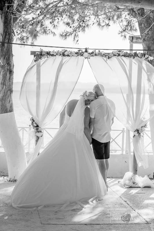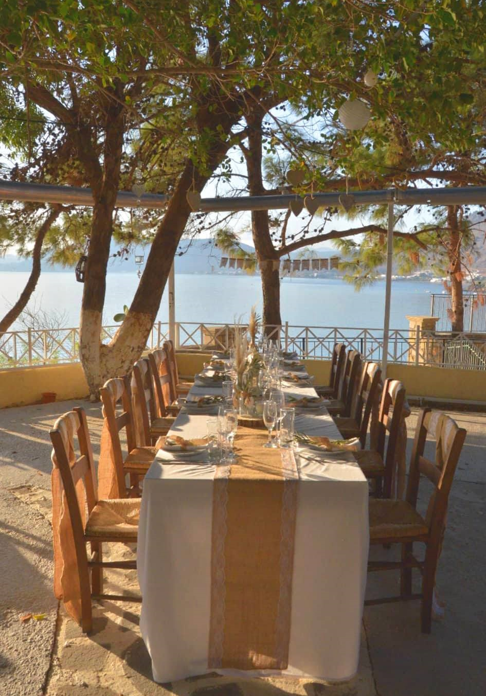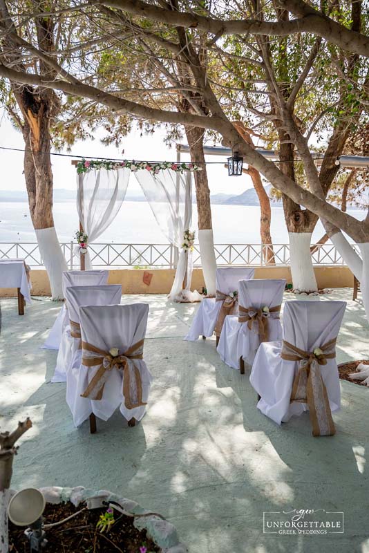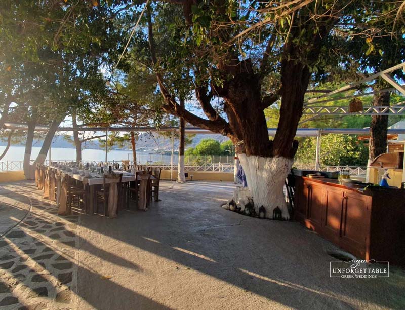 Saying 'I do' under the shadows of the trees overlooking the blue sea of Pefkos, couldn't be more picturesque for your perfect Greek wedding at Amfialos Restaurant in Pefkos.